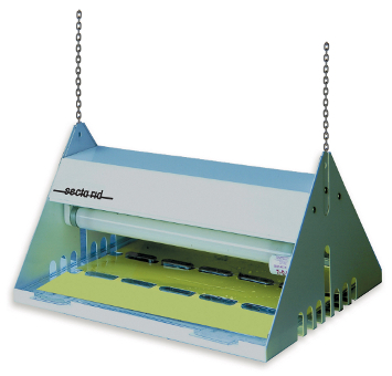 Using an open design to maximise its ability to attract bugs and insects the Secta-rid Fly Trap is a very effective form of insect control unit. In addition to the twin ultra violet lamps the Fly Trap also uses a chartreuse glue board to catch insects and bugs. The Fly Trap is designed for tool free maintenance making it easy to replace parts like the lamps or the glue board when necessary.