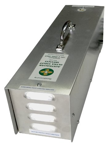 The Mark 6 Fan Forced New-Air Deodoriser that is designed to be able to be placed on the floor of almost any room and can effectively destroy bad odours, kill airborne viruses and bacteria, and is effective against cigarette smoke. The Mark 6 Fan Forced New-Air Deodoriser draws in air at one end of the unit and passes it over an ultra violet lamp, putting out clean odour-free air from the other end. The Mark 6 Fan Forced New-Air Deodoriser plugs into a standard power outlet and has a handle to make it easy to move the unit from place to place.